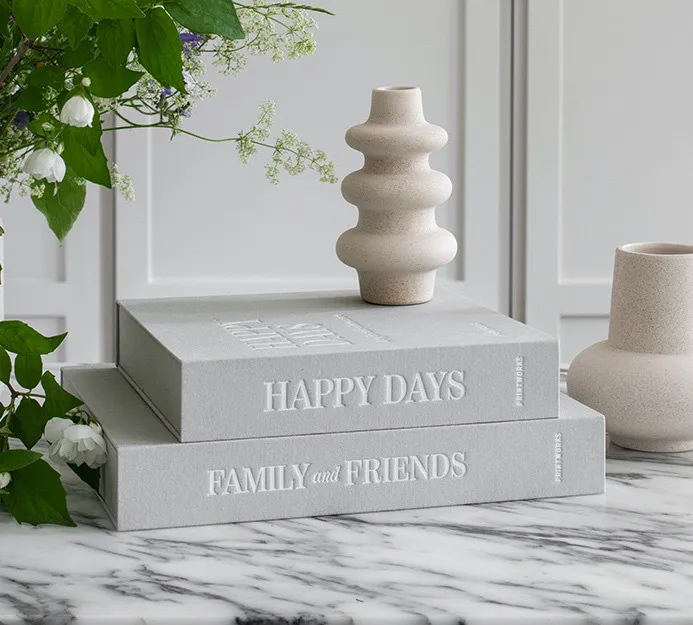 Discover our Family and Friends Coffee Table Photo Album with an elegant light grey cloth cover and white text. Stick your favorite photos in this still-empty album; the high-quality black photo paper accommodates two 10 x 15 cm photos per page and leaves space for notes. The book has 30 pages sized 19 x 20.5 cm.